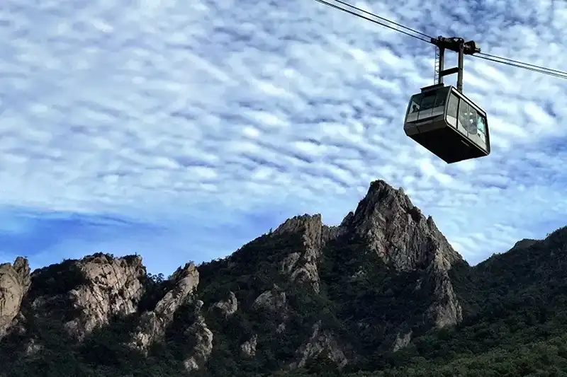 설악산 케이블카는 단 5분 만에 해발 699m의 권금성까지 편안하게 올라갈 수 있는 특별한 경험을 제공합니다. 케이블카를 타고 올라가는 동안 웅장한 설악산의 비경과 끝없이 펼쳐진 동해의 푸른 물결을 한눈에 담을 수 있습니다.