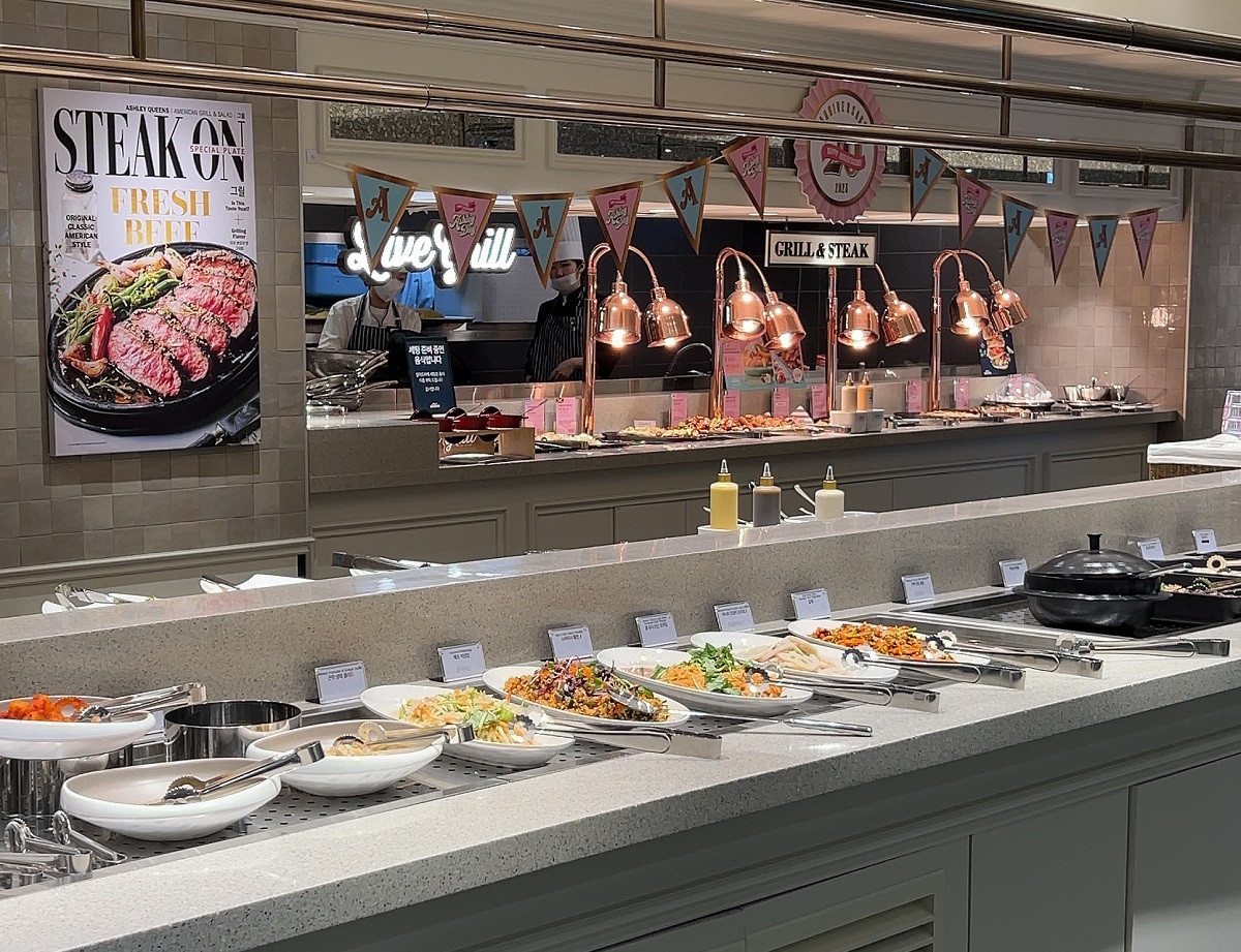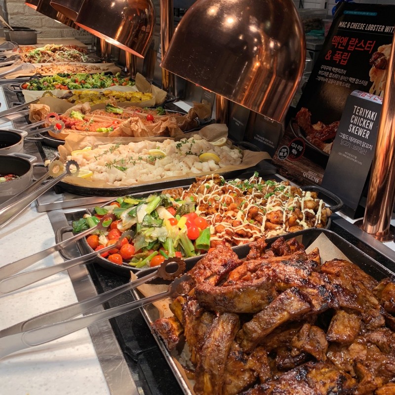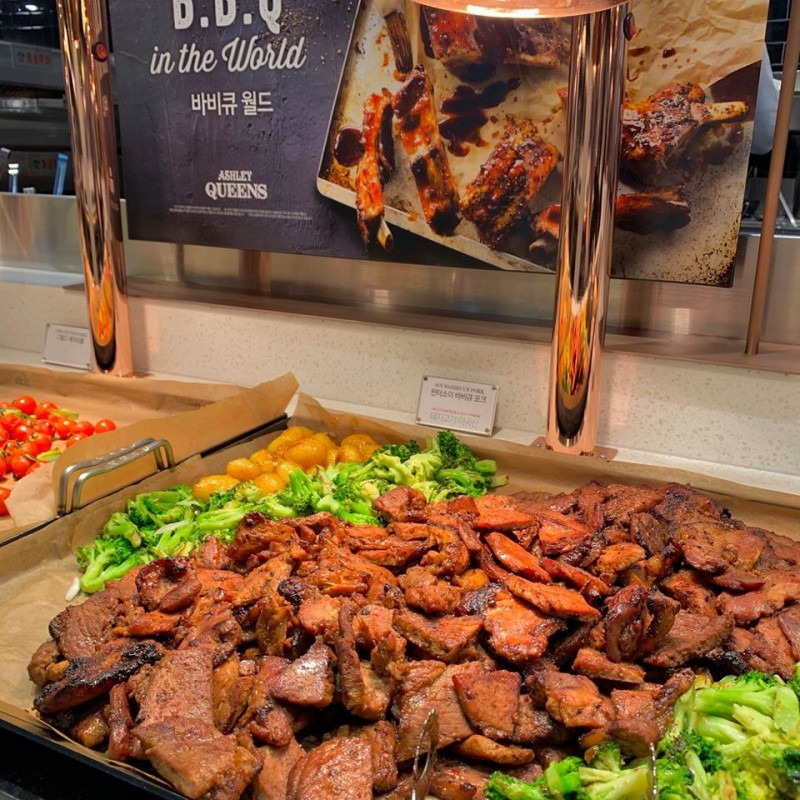 애슐리퀸즈의 메뉴는 다양한 코너로 구성되어 있어, 취향에 맞는 음식을 골라 즐길 수 있습니다.